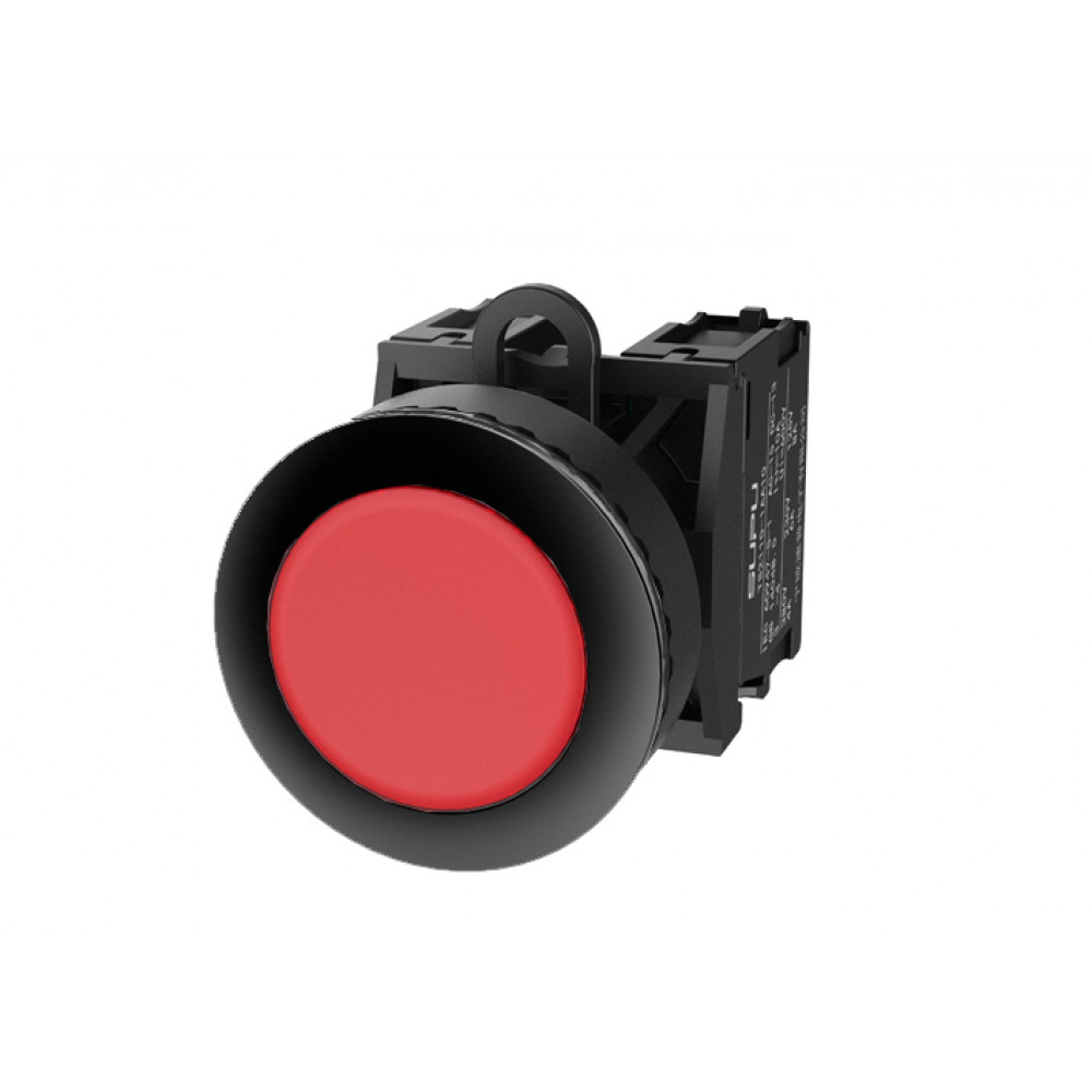 Кнопка круглая плоская, без блокировки, без подсветки, утопленное пластиковое переднее кольцо, без контактной группы, диаметр головки кнопки 36 мм, диаметр посадочного отверстия: 22 мм, цвет: красный