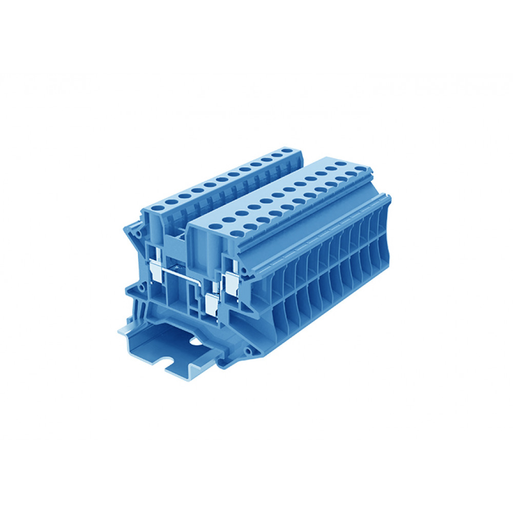 Проходная клемма, 3 точки подключения, тип фиксации провода: винтовой, номинальное сечение: 4 мм кв., 32A, 1000V, ширина: 6,2 мм, цвет: синий, тип монтажа: DIN 35