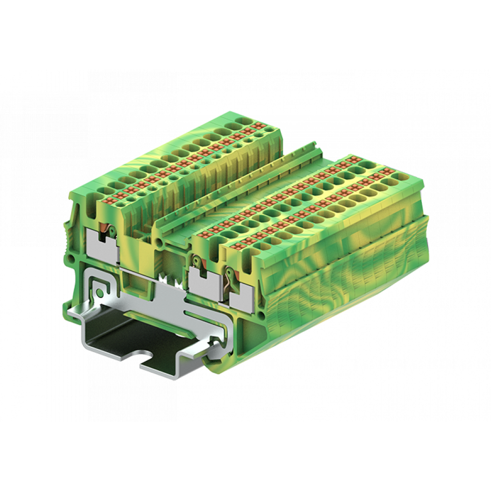 Заземляющая клемма, 3 точки подключения, тип фиксации провода: Push-in, номинальное сечение: 1,5 мм кв., ширина: 3,5 мм, цвет: желто-зеленый, тип монтажа: DIN35