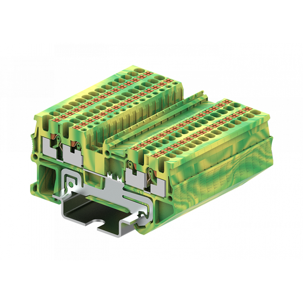 Заземляющая клемма, 4 точки подключения, тип фиксации провода: Push-in, номинальное сечение: 1,5 мм кв., ширина: 3,5 мм, цвет: желто-зеленый, тип монтажа: DIN35
