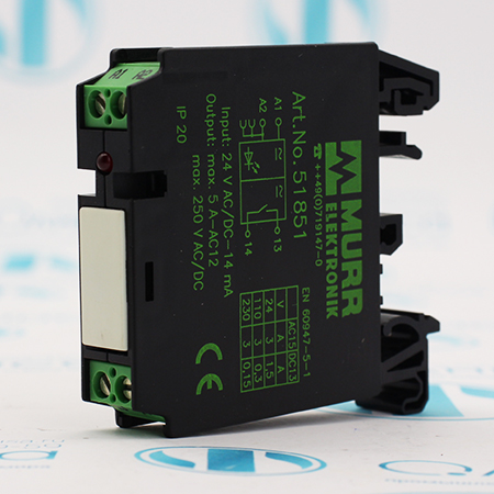 51851 Реле Murr Elektronik, время включения 10мс, выключения 15 мс, входной ток 15мА, катушка 24В, 1 полюс.