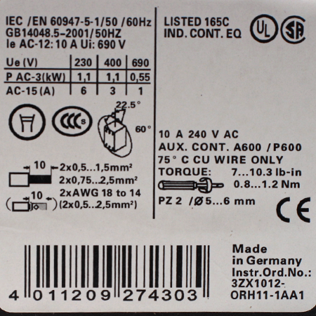 • Краткое наименование: 3RH1122-1BB40 Контактор вспомогательный Siemens