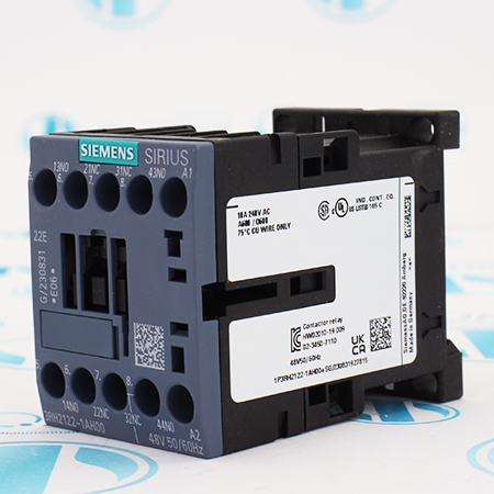 3RH2122-1AH00 Контактор Siemens, вспомогательный контактор, контакты 2но+2нз, номинальное питающее напряжение цепи управления us ac 48v, 50/60 гц, типоразмер s00, винтовые клеммы.