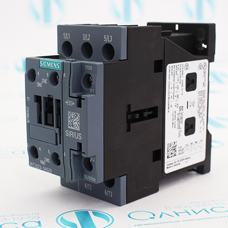 3RT2023-1AG20 Контактор Siemens, 3 пол., ac-3, 4квт/400в, блок-контакты 1но+1нз, ном. напряжение управления 110в ас 50/60гц, типоразмер s0, винтовые клеммы.