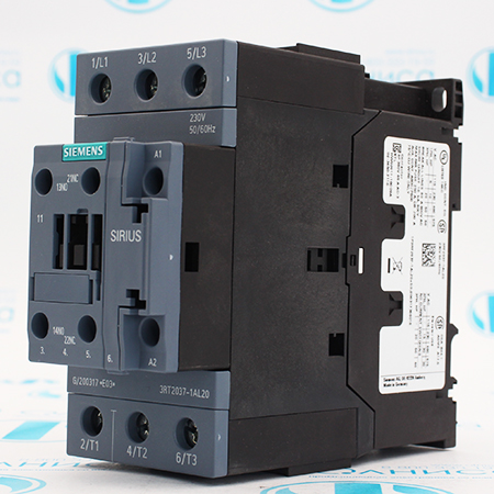 3RT2037-1AL20 Контактор Siemens, 3-ПОЛ., 30КВТ/АС3/400В, блок-контакты 1НО+1НЗ, номинальное питающее напряжение цепи управления US 230В АС 50/60ГЦ, типоразмер S2, винтовые клеммы.