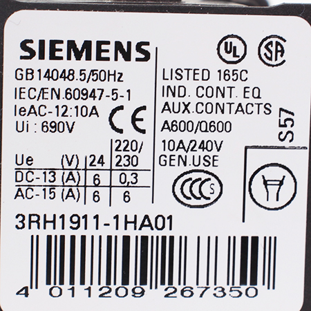 • Краткое наименование: 3RH1911-1HA01 Блок дополнительных контактов Siemens