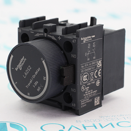 LADS2 Блок дополнительных контактов Schneider Electric, Место монтажа: Передний Конфигурация главных контактов: 1 Н.О. + 1 Н.З. Contacts operation: Time delay Тип таймера: С задержкой включения Диапазон задержки: 1...30 с [Ue] номинальное рабочее напряжение: 690 В Переменный ток 25...400 Hz [Ie] номинальный рабочий ток, 6 A в 120 В AC-15 1,04 A в 690 В AC-15 0,55 A в 125 В DC-13 0,1 A в 600 В DC-13