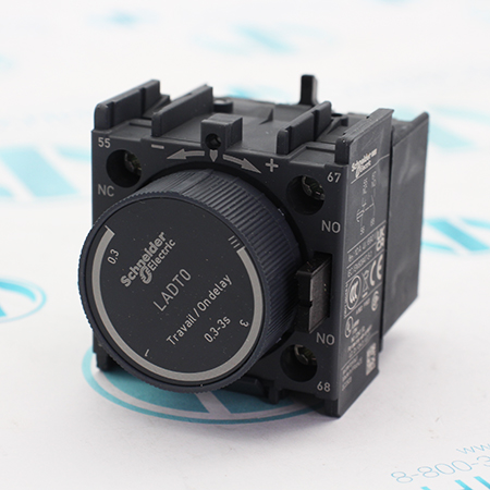 LADT0 Блок вспомогательных контактов Schneider Electric, с задержкой времени, TeSys Deca, 1НО + 1НЗ, задержка включения 0,3-3с, спереди, винтовые зажимы.