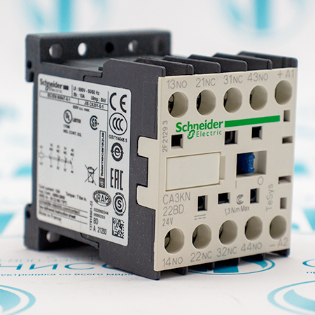 CA3KN22BD Реле промежуточное Schneider Electric 2НО+2НЗ. Цепь управления 24В постоянного тока. Номинальное рабочее напряжение не больше 690 V и 400 Hz.